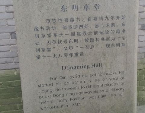 东明草堂,天一阁建成之前范钦的藏书处,从某种意义上讲,她是天一阁的前身。范钦故题其书室为“东明草堂”,正是东明草堂奠定了以后天一阁的基础!