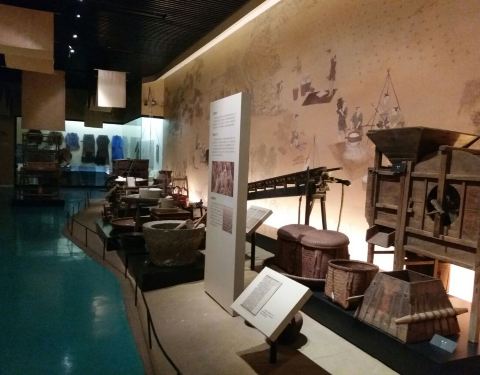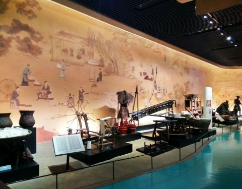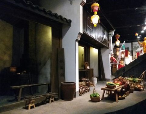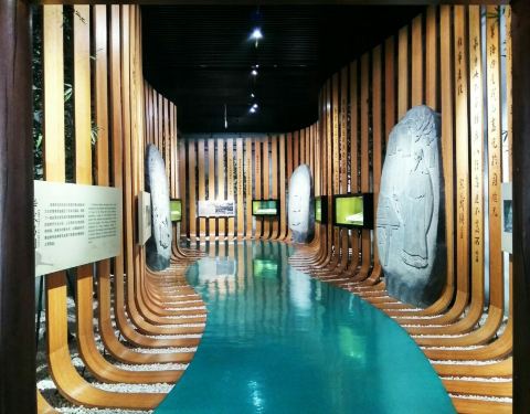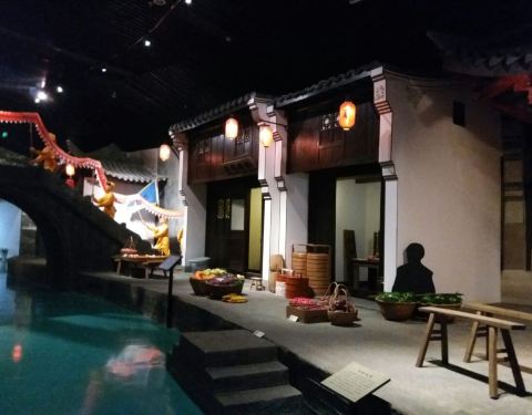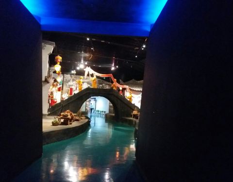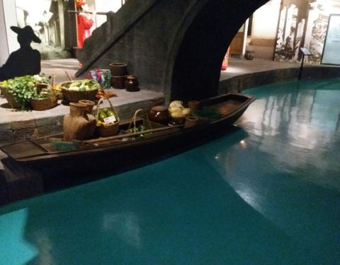 了解一座城市,先从它的博物馆开始。 在余姚的第一站,我来到了位于龙泉山西麓下的余姚博物馆。 从外观看,博物馆的外形建筑上的屋顶形式蛮有特色,我看了半天,没能看出到底属于那种屋檐形式,只是觉得如果能从高空看到,一定很有意思。 进入博物馆,一位渔家撑着乌篷船的雕像“引领”我们开始了“一场烟水万人家(北宋著名文学家范仲淹《送谢景初迁凭宰余姚》诗)"的游览。 博物馆从外面看起来虽然不大,却有着两层的展馆,分布着分序厅、姚江文脉、东南名邑、文献名邦、姚江流韵五大部分。 漫步于博物馆内,了解了余姚原来是分有南北两个古城,而我们坐车经过的甬江是这两座古城的分界线;余姚市的标志性建筑通济桥则贯通南北古城。古代余姚的农业经济依赖“三白三毛”,何谓三白三毛,三白指的是稻米、棉花和海盐;三毛是毛竹、毛笋和毛茶。现在看看,这三白三毛,依旧是余姚人的主要农业生产。 在博物馆里,除了看各种人文文物,更吸引我的其实博物馆内部的布置:乌篷船指引我们进入烟水万人家的姚江文脉;在半座通济桥下看东南名邑;穿过书简林立的道路,在书院里饱览名邦文献;穿街走巷的融入到姚江两岸的风韵之中。