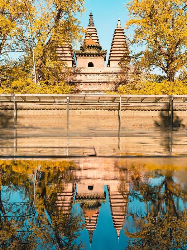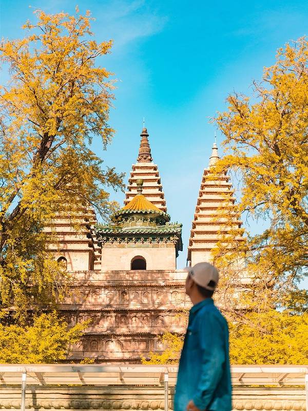 🍂目前五塔寺内已经开始进入银杏观赏期,接下来将持续有半个多月都能看到这绝美的秋景。