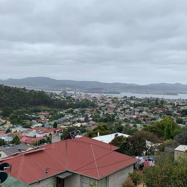 爬上山顶,可以俯瞰整个霍巴特城,以及远处的大海,景色非常的优美壮观