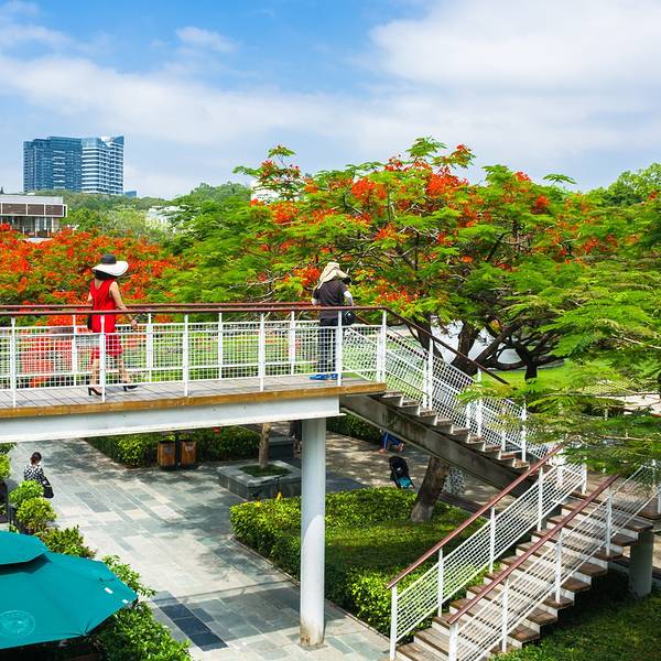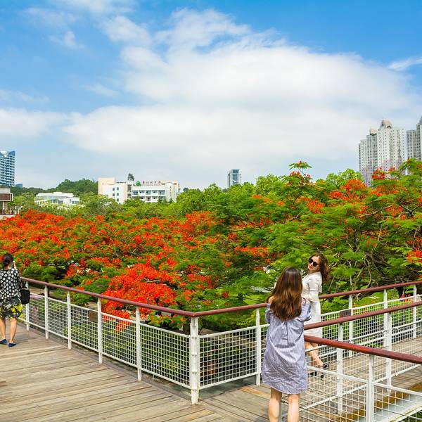 友情提醒:只有每年阳历的5月份—6月份是凤凰花开的日子,其余时间去的话没有多少亮点。华侨城生态广场自带二楼赏花平台,站在桥上,便是一步一景,正是因为有了这惊艳动人的凤凰花。 展开
