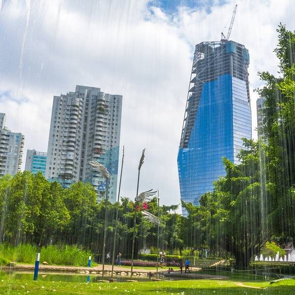 在西部华侨城,这个广场是法国设计师设计的,花了17亿