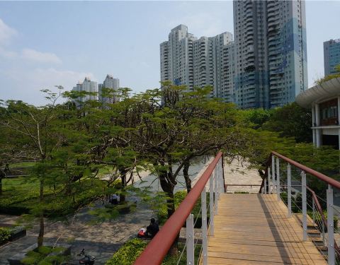 不过呢,广场附近有一个很大的湖泊,还有很多椰子树,适合附近居民散步,也算是很不错的地方了