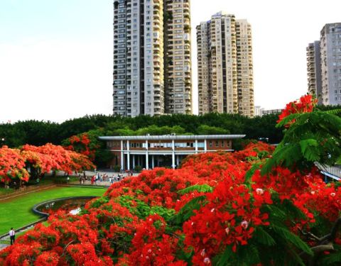 华侨城生态广场要说最吸引人眼球的就是凤凰花海,每年的五月到六月是凤凰花开的日子,也是华侨城生态广场最漂亮的时候,这段时间的凤凰花热情似火,花朵娇艳,美不胜收。