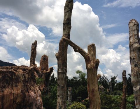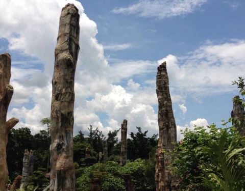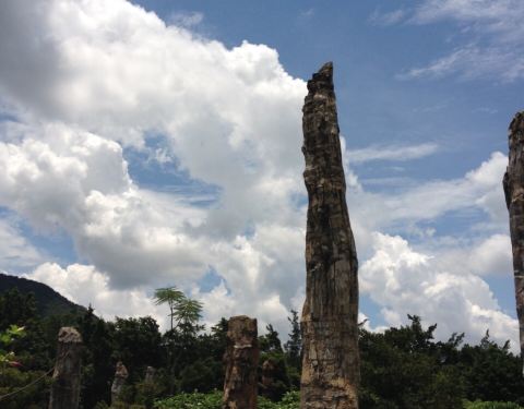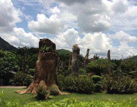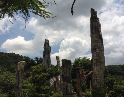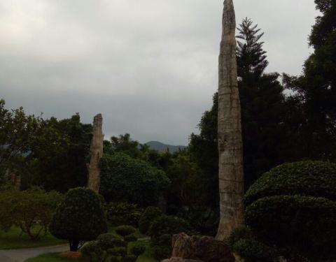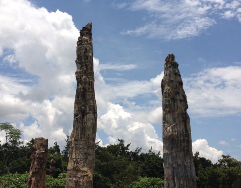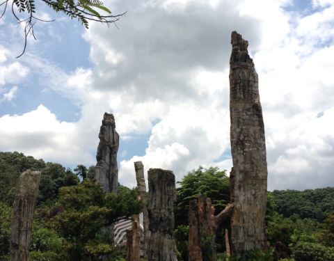 就在仙湖公园里面,桃花林和古生物博物馆的旁边,在博物馆前面的那块地上。就只是一根根很粗壮的木头竖在那里,不是考古家,看不懂怎么个不一样。这些树木都保留得很完整,值得一看。