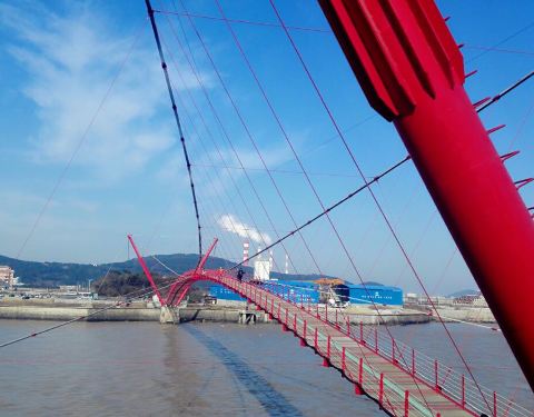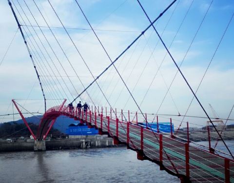 免费开放,通往外蒲山,山上风景还不错,就是去的那天风比较大,桥晃的厉害,穿高跟鞋不能走,因为桥面是网状的