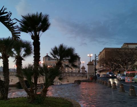 我是到了奥提伽古城,才知道这里和一部电影有关,回家以后我才去看了《西西里美丽的传说》 好像不在乎故事情节,却在镜头里寻找熟悉的场景。这原本是一个要好好游览的地方,我却匆匆离去了,似乎这里注定要留下一个段悲伤的记忆。 古城留给我的印象是雨后彩虹过后的墨色天空,以及夜色灯影下湿漉漉的青砖,和古罗马柱映衬下的沧桑,即便有的橱窗内透着现代时尚的扮相,仍然依附着建筑外观带来的旧时气息,给人带来视觉冲击感。古城不大,却相对完善,有中心广场与教堂,有深深小巷,有海堤栈桥,难怪导演找到了这里。