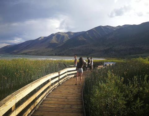 非常漂亮,游人很少,邻近优胜美地国家公园的东门。湖边的日出日落非常漂亮,有很多水鸟非常漂亮,游人很少,邻近优胜美地国家公园的东门。湖边的日出日落非常漂亮,有很多水鸟。因为是盐碱度很高的盐碱湖,湖边有一种很小的苍蝇,湖也比较臭