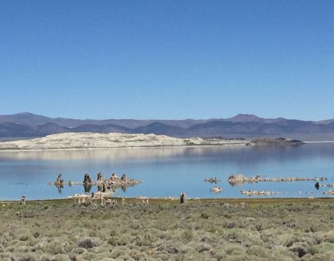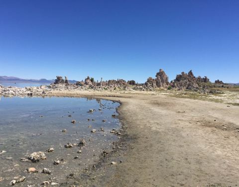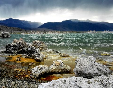 莫诺湖在优胜美地国家公园里面,是加州第二大湖,也是北美最古老的湖泊之一。强碱性的湖水使得鱼类无法生存,但却有许多水鸟,水位不断下降也让灌木丛露出水面。