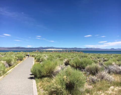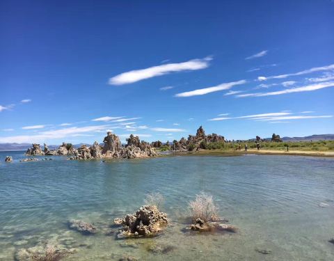 湖边有木栈道可以环湖漫步,非常的惬意MONO湖是一个盐水湖,处于优胜美地国家公园内,湖水湛蓝湛蓝的,一层层由浅入深,感觉水不是很深,岸边上会出现由盐巴堆砌的塔鳞栉。湖边有木栈道可以环湖漫步,非常的惬意。