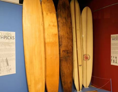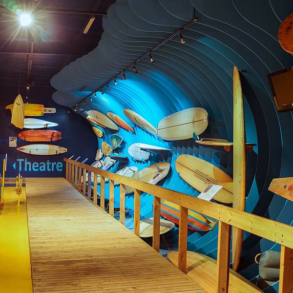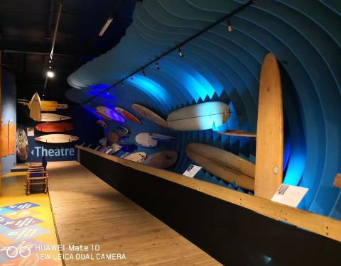 冲浪博物馆(Surf World Museum)是我踏上大洋路前的第一站,他位于托基(Torquay),门脸极其像一家便利店,自身更是深藏在纪念品商店的深处。进入博物馆里,大量的板板随着浪涛接踵而来!冲浪世界博物馆大概是影视作品影响了我对冲浪板的概念,一直觉得冲浪板应当是那种小小的一块,帅气男主角腋下一夹就OK的那种。所以真的见到真正尺寸其实大多是大到两人高的冲浪板的时候,我感到自己的认识又被刷新了。冲浪世界博物馆博物馆不大,我却意犹未尽!漫步在冲浪板的世界里,我了解到了冲浪板的大小、弧度、色彩以及与冲浪有关的服装都是非常专业的领域,在我认为只有玩闹娱乐的冲浪里其实带着浓浓的学术气息,其考究的工艺也再一次将我的“玩”心带到了崇敬的高度,让我对冲浪的轻浮之心自惭形秽。
