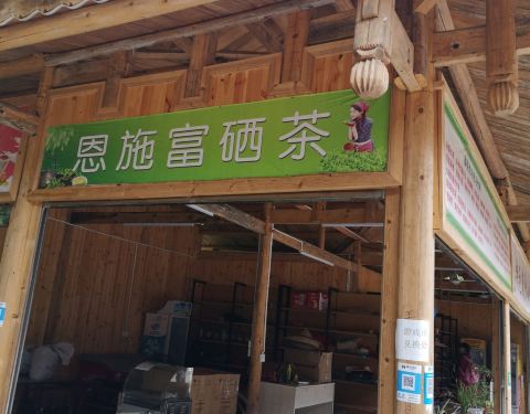 枫香坡侗族风情寨之富硒茶:位于湖北省恩施芭蕉乡高拱桥村的侗族风情寨,寨门两边就有卖富硒茶的,有...枫香坡侗族风情寨之富硒茶:位于湖北省恩施芭蕉乡高拱桥村的侗族风情寨,寨门两边就有卖富硒茶的,有恩施玉露,白色的藤茶,绿色五叶绞股蓝,走进寨中还能看到制作富硒茶的箩筐等专业工具。