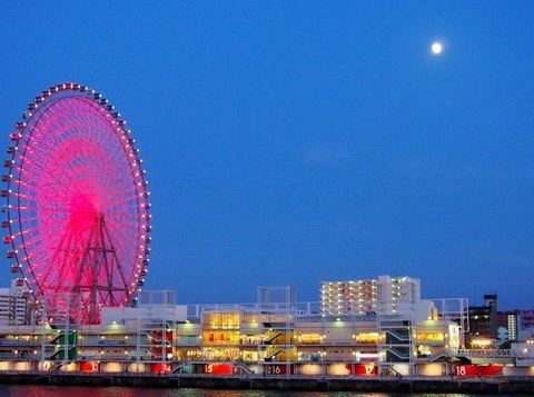 这一个地区也是大阪很受欢迎的一个观光地了,位于海边,而且包括摩天轮和海洋馆都在这里,一般就是下午过来玩了之后晚上看一下夜景,挺不错。
