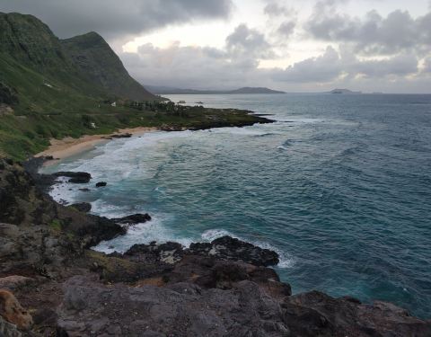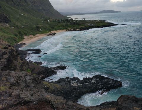 停车方便,正好可以鸟瞰整个玛卡布海滩,看人们在此戏浪,非常漂亮,观景台靠山边还有一些掩体之类的小洞洞