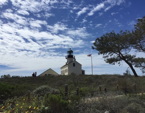 洛马岬是圣地亚哥所在的太平洋上高海拔的海岬,这里有一座灯塔,不过现在已经废弃了,成为了一个博物馆。洛马岬本身是一个远眺圣地亚哥风景视野最广的地方,站在这里,整个圣地亚哥市区和海湾都可看到,完全是一幅美丽的图画。开车进入洛马岬需要收费5美元。