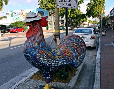 第八街是小哈瓦那的核心区,我沿着第八街走的。街边有各式各样的公鸡造型,不知有什么含义