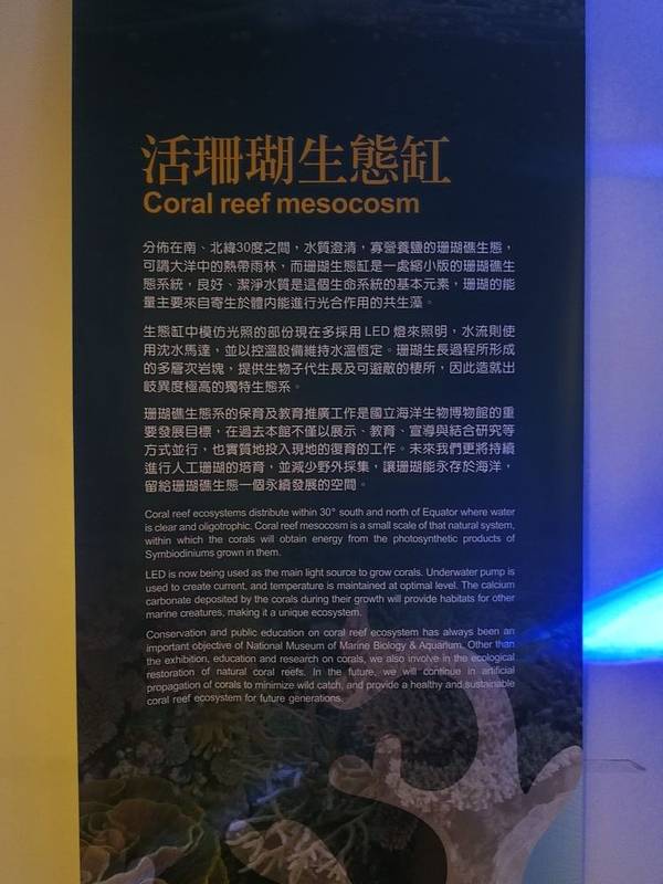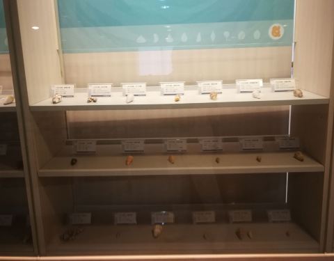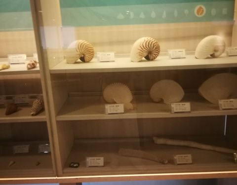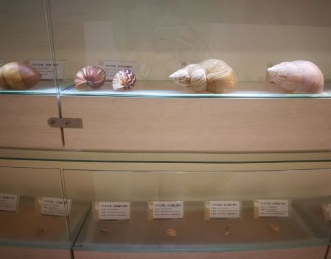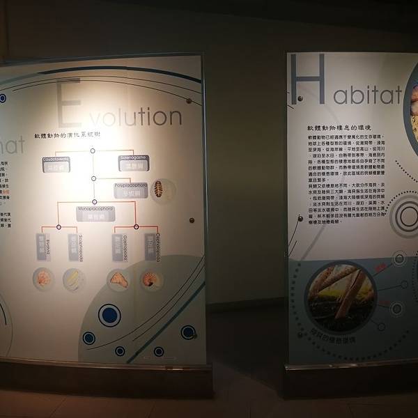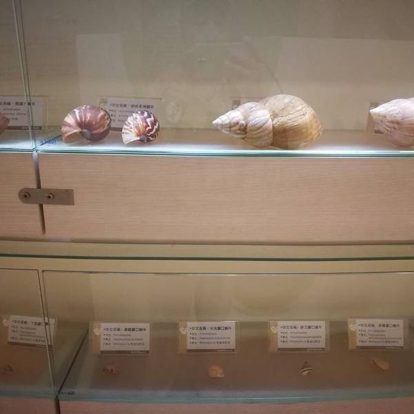 馆内介绍了软体动物的知识,蛤,蚌海螺这些贝类,与章鱼乌贼等没有外壳的动物统称软体动物。双壳纲,掘足纲,头足纲,腹足纲统称单板纲,如贝和螺。 软体动物已经适应千变万化的生活环境。海贝指生活在潮间带,浅海深海的贝类。淡水贝指生活在河川湖泊溪涧水田等淡水环境的贝类。陆贝是生活在湿地林木树栖地栖的贝类。 台湾的洋流有黑潮和涌潮流,让深海的养分给贝类带来了丰富营养物质,又分为,海岸贝,浅海贝,深海贝。 南北纬三十度之间,水质澄清,出现了珊瑚礁生态,让我们更好完成珊瑚的保育工作。