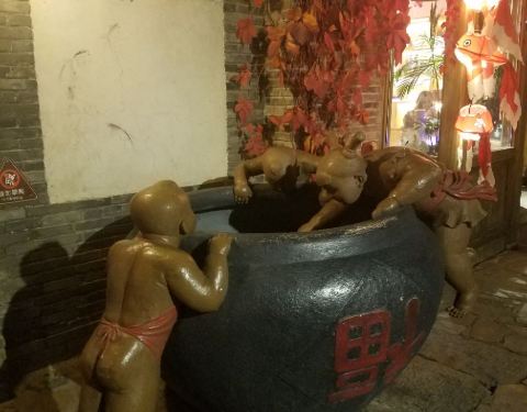 就是汤市街了,这里有手工作坊,特色小吃,比如茶餐厅,火烧铺,梅干菜烧饼,梅干菜烧饼景区内特色小...过了古北水镇的南天门,就是汤市街了,这里有手工作坊,特色小吃,比如茶餐厅,火烧铺,梅干菜烧饼,梅干菜烧饼景区内特色小吃,外酥里嫩价格实惠仅5元,但每人只能限购2个,因为要保持口感所以每一炉只能出8个,...过了古北水镇的南天门,就是汤市街了,这里有手工作坊,特色小吃,比如茶餐厅,火烧铺,梅干菜烧饼,梅干菜烧饼景区内特色小吃,外酥里嫩价格实惠仅5元,但每人只能限购2个,因为要保持口感所以每一炉只能出8个,错过这一炉再等10分钟,所以每天排队买烧饼的人络绎不绝。 展开