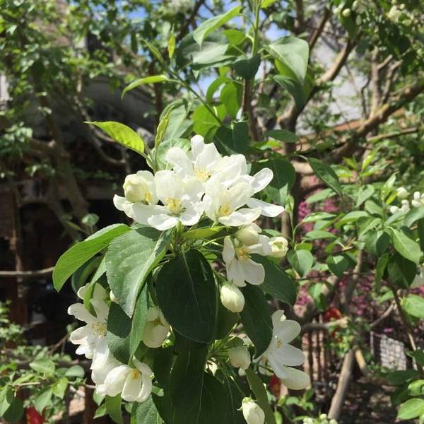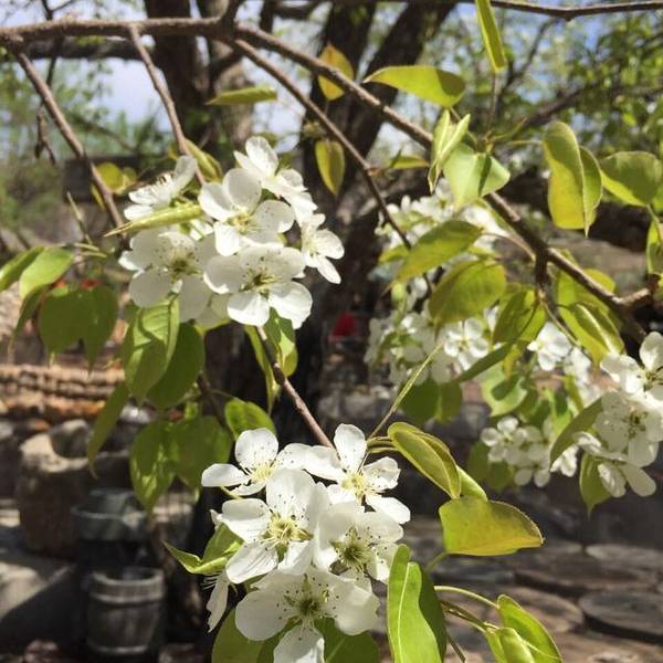 在A区中,整个园林设计很是用心,这里是小桥流水,那边就是东北古民居,远处就是林区小木屋,很适合小朋友游玩。酒庄还巧妙地利用了原来的一片梨树林,尤其是几棵百年梨树进行景观设计。这次去时正赶上梨花盛开,时机刚刚好。