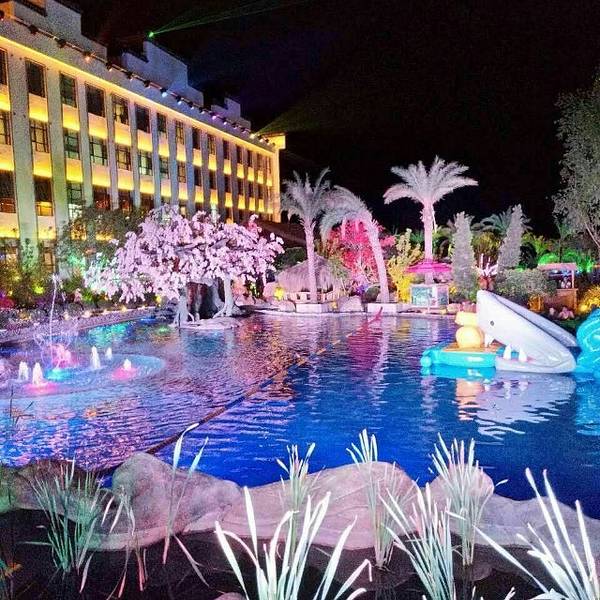 每次来变化都好大,圣鑫真是让我流连忘返,我一个旱鸭子初次体验了300米超长的水道那叫一个刺激而且还有适合孩子玩的充气水上城堡,最主要的是这里的服务非常到位真的让人体验到家的感觉 最震撼的还是夜景不管是温泉还是山庄都美的不要不要的