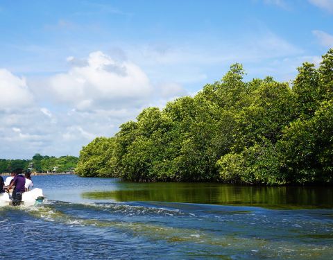 乘木船在本托塔河中漫游,可以观看湿地的红树林生态环境,红树林中可以看到许多鸟类动物,还可以可以观赏斯里兰卡独有紫脸猴子,还能体验鱼足疗。