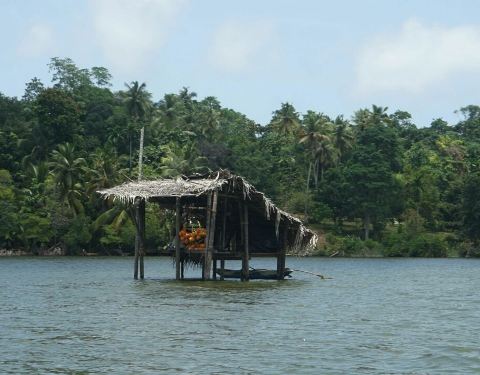 本托塔附近的马杜河,是河水流入印度洋入海口处的一个泻湖,我们乘船绕湖一周,见到满眼常绿的热带植物,船穿过一群褐色根系时,导游告知这就红树林,有点名不符实,据说不少的野生动物,我们只见到南洋大蜥蜴和一只猫头鹰,余者缘分不够,没有见到。还有水中水果铺、斯里兰卡特有的两头翘细长的小舟,也可看看。