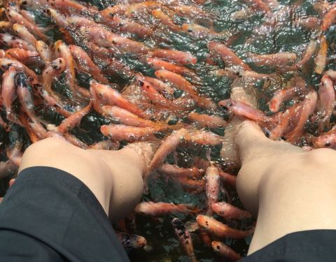 湖中有卖水果的小屋,有做鱼疗的小店铺,在这里游玩一点也不觉得枯燥