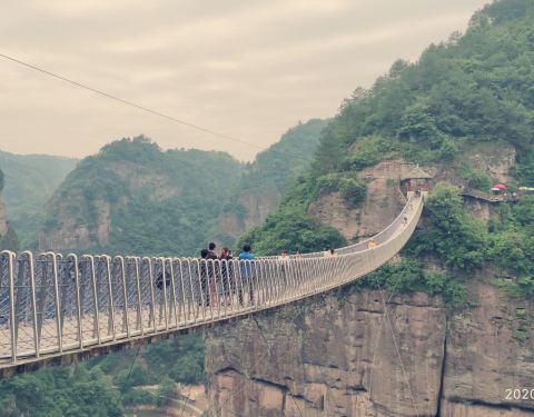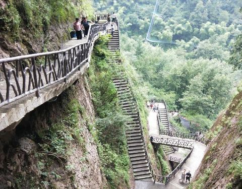 一点也不刺激,风景挺好。一直以为是玻璃桥,原来只是个玻璃栈道,索桥不是玻璃的。上去一共走了一千个阶梯一直以为是玻璃桥,原来只是个玻璃栈道,索桥不是玻璃的。一点也不刺激,风景挺好。门票60,走玻璃栈道20。去的时候人不是很多。上去一共走了一千个阶梯。