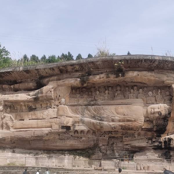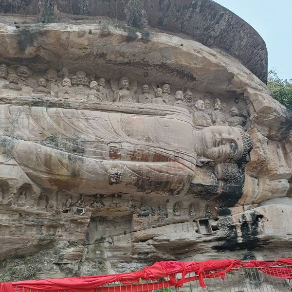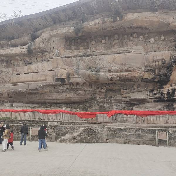 安岳卧佛院景区整个造像依山取势、精心设计、大胆创新,由三组造像构成,占整个崖面300余平方米。上面一组造像是释加牟尼涅槃前的说法图,中间一组为唐代"释迦牟尼涅槃图"卧佛造像。卧佛面南背...安岳 卧佛院 实用