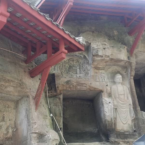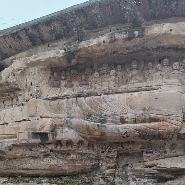 实用 安岳卧佛打卡安岳卧佛院位于距四川省安岳县城北部39公里的八庙乡卧佛镇,处于今安岳与安居、乐至三县交界之地。石窟营建于天然形成的近30米深谷的南北两崖之上,长约1.2公里的造像区内大小洞窟上下重叠,形如蜂房,现存摩崖造...安岳卧佛院位于距四川省安岳县城北部39公里的八庙乡卧佛镇,处于今安岳与安居、乐至三县交界之地。石窟营建于天然形成的近30米深谷的南北两崖之上,长约1.2公里的造像区内大小洞窟上下重叠,形如蜂房,现存摩崖造像1613躯,出土圆雕120尊,线刻造像5尊,粗坯6尊, 2条、神兽22只、佛塔5座、经幢1座、唐碑2通、宋碑1通、游记诗3首、题刻23条、石壁刻经15洞,约40万字。该石窟三面环水,北面环山,加之位于深谷中 罕至,长期不为外人所知。在清代《安岳县志》中仅有"卧佛寺治北40 像森然今未修"记载。到1982年春节,第二次全国文物普查期间才被当地文化馆工作人员发现上报,长达21.3米的唐代左胁卧佛和40万字盛唐石壁刻经轰动世界,1998年被国务院列入第三批全国重点文物保护单位。是建国后发现的最重要古代石窟造像群,具有突出的历史、艺术、科学、宗教价值。