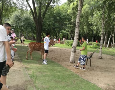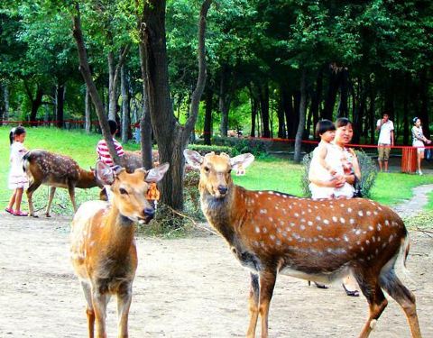 在哈尔滨美丽的太阳岛上,有一处小朋友们最喜欢的景点-鹿苑,在这里有许多梅花鹿,小朋友们可以在这里与鹿亲密接触,抚摸小鹿并喂小鹿。