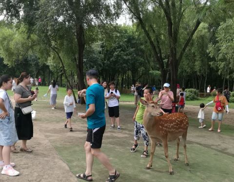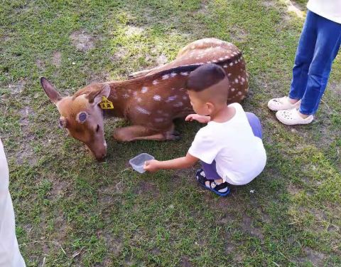 有一处小朋友们最喜欢的景点-鹿苑,在这里有许多梅花鹿,小朋友们可以在这里与鹿亲密接触,抚摸小鹿...