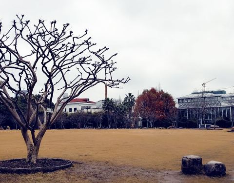 在企业中心旁边,其实离开火车站还是有一定距离的,这个绿地现在做的很好,好久没来了,发现这边还种了许多热带的那种树,中介一块很空旷