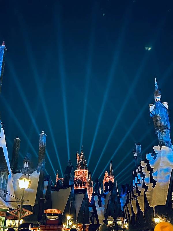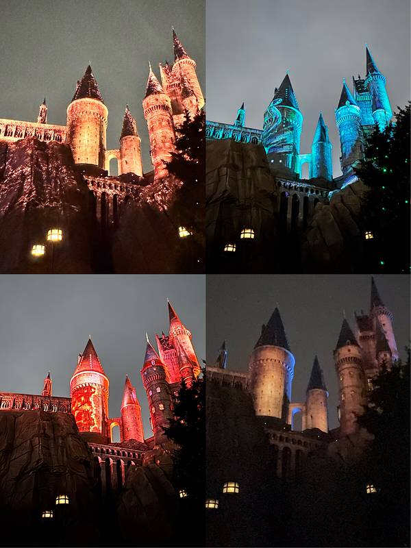 晚上霍格沃茨城堡会有灯光秀,超震撼,色彩变换,氛围感拉满💕