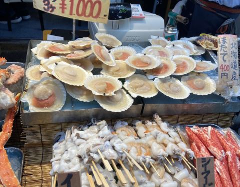各种海鲜非常新鲜可口,价格也适中,还有各种小吃,可以在里面吃一天,太美了黑门市场,美食太多了,琳琅满目,可惜自己只有一个胃口。各种海鲜非常新鲜可口,价格也适中,还有各种小吃,可以在里面吃一天,太美了!!