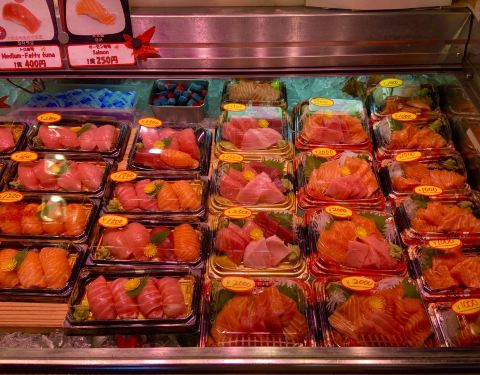 市场新鲜的海鲜真的是琳琅满目,看花眼的节奏,我买了一个花样寿司,加上冰冰的寿司米,真的好美味好新鲜,海鲜都是甜甜的;