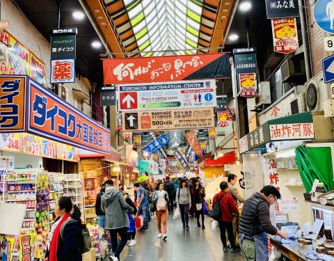 大阪,由于是众多日本经典料理(大阪烧、炸串、章鱼小丸子等)的源发地,而被日本人视为“日本的厨房”。而黑门市场,又被称作“大阪的厨房”。 600米长的市场挤着近200家的商店,他们经营着各类肉制品、海鲜、蔬果、家居用品等生活所需,大阪人每天都会来这里采购非常新鲜的海产或是蔬菜,黑门市场是很能体现日本大众生活的地方。一走进黑门市场,你就会被这整洁明亮的环境所吸引,虽然是个大菜场,但是空气中却没有任何异味,每个商家也看起来非常和蔼亲切。现在也是海外游客必去的景点之一。
