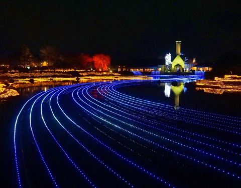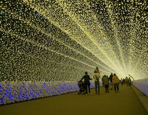 名花之乡位于名古屋东面的三重县桑名市长岛度假村内,是一个以花为主题的公园,这里每年春夏会变身为大片的玫瑰园或郁金香园,秋天则红叶遍野。特别值得一提的是,每年冬天围绕当年主题打造的绚丽灯展,在夜空下点点灯光简直像走进了童话世界一样,浪漫美妙。