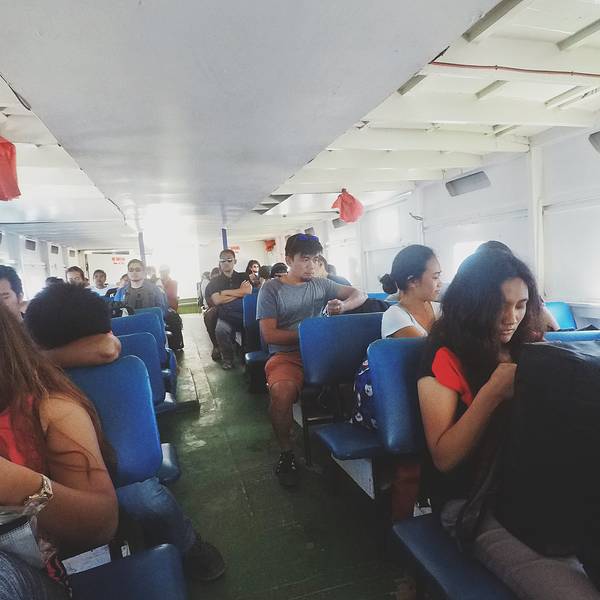 从宿雾城到墨宝不堵车也就两个半小时。不过我们是从锡基霍尔出发,这一路就有些折腾。工作日离开锡基霍尔的小船多了不少。我们选择了一家叫Jay Lann,大约1小时20分钟便可到达杜马盖地。这艘小船没有我们来时的那艘豪华,窗户竟用一块木板就搞定。这就是东南亚一些岛国的特色,不足为奇。已经没有刚来这里的新鲜感,除了行李箱和大背包能显出游客的身份,感觉已经融入了当地环境,尤其是晒黑的牛肉先生。🌚