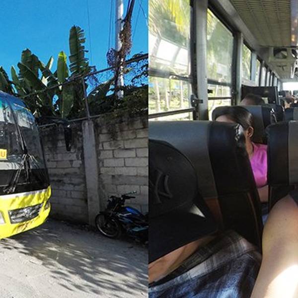 小船摇着摇着我们不由自主地打起盹儿来... 又回到了熟悉的杜马盖地码头,坐上Tricycle沿着海岸公路行驶。海对岸就是宿雾岛,我们在Tampi码头搭乘另一艘渡轮回到宿雾Bato码头。👇船上的时光就翻翻之前的路的视频,即使船尾机器轰鸣,戴上小鸟Libraton降噪耳机后依旧可以沉浸在自己的世界。终于结束了在海中的旅程,如果你也来到菲律宾这样的千岛国,一定做好在海中飘荡的准备。从宿雾南部坐车到墨宝有两小时的车程,我们选择了这个Ceres公司的黄色大巴。车上除了四个德国背包客和我们就全是菲律宾人了。又是一次local的体验了。👇