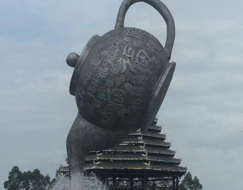 早餐是海宸大酒店的自助。今天第一站是仿侗族村寨。推销银器的地方。裁了几下,不知道哪个效果好。