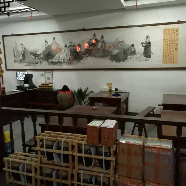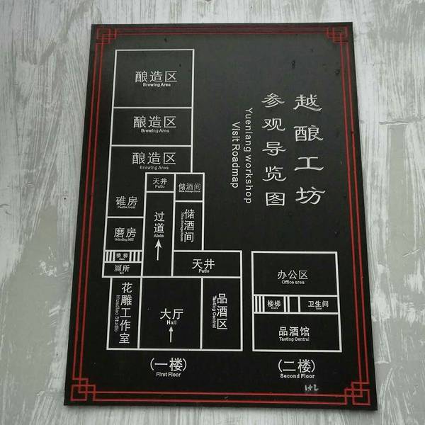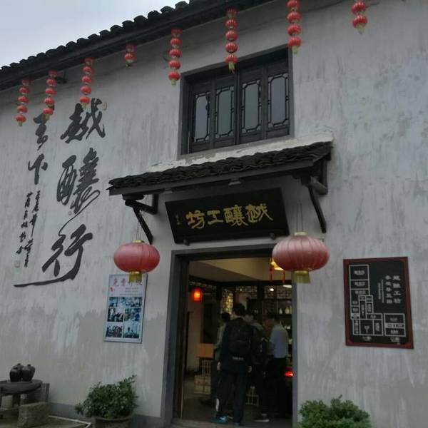 首先非常感谢我们的那位客户领我来到这里,要不还真找不到。让我领略了老酒的制作过程,品尝了正宗的绍兴老酒味道,还买到了10斤老酒,可以无限期储存的,加了泥封的。 先说说这家店的位置,我住在绍兴智汇大酒店,出了酒店右转有个十字路口,向北走200多米,有个小石桥,拐进去,走大约50几米,左转,有个笔飞弄,从笔飞弄进去一直走,路过蔡元培故居和浙江钱业会所,有个路口右转,走30米就看到了,整个都是老街,非常的漂亮。门前的墙上有工坊的平面图一进门右转就是品酒区直走是酒品展示地上放的酒坛子,都是用泥封封好的,老板说可以恒温保留很多年。展示厅有很多挂牌标价的酒品,古色古香往里走就是酒作坊了,炉温还有一点,看来白天还在做酒。店主很热情,让我们品尝了香雪酒的味道,和中午喝的太雕完全不是一个味道,一口下肚后,一股热气从胃部往上发,到口里有种醇厚的味道,确实是好酒,和市面的太雕不一样,老板说,“太雕”是3种酒勾兑的,所以味道差一些。看着老板这么热情,我们每个人都买了去年酿的春雪酒一坛子共十斤装的,加了泥封,400元一坛,外加运费160元。现在正热切的等着酒到呢,刚才店家加我微信了,告诉我5天准到。酒香不怕巷子深还真应了这句话。越酿工坊是一个集旅游、购物、学习酿酒知识的好地方。