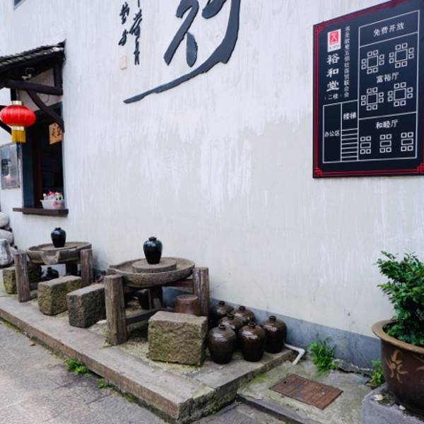 越酿工坊 我是在一面墙上看到这个点的,原本以为这是一个酿酒工艺作坊,原来并不是…… 📍坐标:书圣故里笔架桥26号(题扇桥过去,躲婆弄出口) 环境:现在他已经变成了一楼卖酒二楼展示的地方了,喜欢他门口的那一个大缸,很有家里面酿酒得时候的感觉。 尽管这里这个大缸是用来装饰用的,屋子外面都是各种空置的酒坛子,酒香文化气息扑面而来,可见卖出了好多酒,这些酒坛子都是需要用的时候用,不用的时候就这么堆放着的。