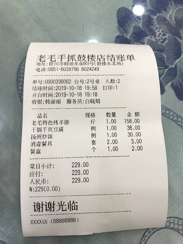 从西夏陵出来天色已渐渐暗了下来,往城里赶,一路上我大众点评搜了一下比较好评的特色店。就是下面这家:老毛手抓。干锅千页豆腐,挺劲道的。扬州炒饭烤羊排账单,两个人不敢多点,怕吃不完。今天正值我的生日,...