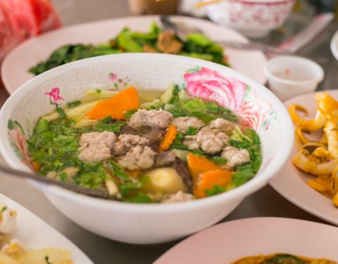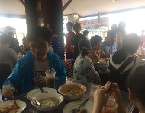 打卡酒店附近的网红餐厅正盛,上午九点到的,已是座无虚席,小店虽不起眼但菜品味道真不错,特别推荐扇贝、鱼丸、冬阴功汤(图一至图三)
