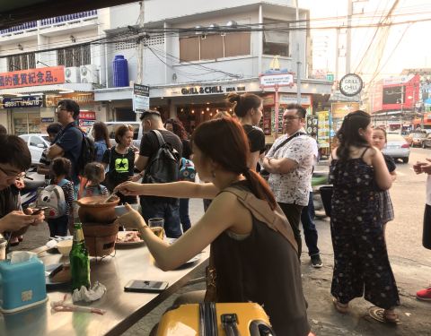 生意很火,泰国的火锅,里面和平时吃的牛油辣锅不同,这个类似于清汤的,煮的也大多数是海鲜,人很多,环境就不要追求过多了,睁一只眼闭一只眼,毕竟是路边摊
