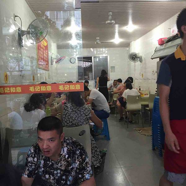 是一家老店,每次去人都特别多,座位都比较紧张,快速的喊了要什么给老板,就快速找座位,经常都是前一家的还没收走后面来人就坐上了,前后位置贴的近。