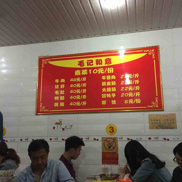 毛记冒菜位于解放西街站,被网络疯转的154路美食一条街公交就途径此站哦。毛记有几家分店,不过这家是老店,味道和人气也是名不虚传。去了几次,每次都要等。 招牌是牛肉,强烈推荐一定一定要点,要是去的晚牛肉...毛记冒菜位于解放西街站,被网络疯转的154路美食一条街公交就途径此站哦。毛记有几家分店,不过这家是老店,味道和人气也是名不虚传。去了几次,每次都要等。 招牌是牛肉,强烈推荐一定一定要点,要是去的晚牛肉卖完了建议隔天再去。牛肉是用料码过的,所以很鲜嫩。都说冒菜是一个人的火锅,火锅是多个人的冒菜,可见冒菜在成都的美食地位还是非常之高的。如果要是不喜欢吃肉可以只点一份素菜,一碗米饭,吃的又爽口又饱。两个人去吃的话,如果不喜欢吃其他黄喉这类的东西可以点一斤牛肉加一份素菜就足够吃的很饱了,或者可以要半斤牛肉半斤火腿。 米饭按人算,1元一位不够可以自己加。去成都的小伙伴如果喜欢吃辣那么一定要来吃一下这家的冒菜。