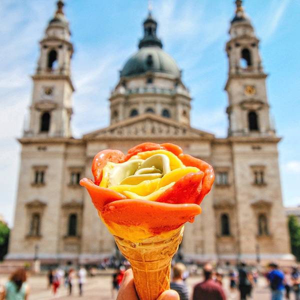 冰淇淋店的门面不显眼,我们按照地址找反而饶了半天。其实就在圣伊什特万圣殿面对链子桥方向左手边小方尖碑旁边。果然网红店,门口排着长队,大部分是游客。冰淇淋的特别之处是逼真的玫瑰花造型,一点点创新就能...