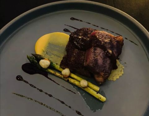 前菜,蟹肉沙拉鱼子酱,非常喜欢的一款,蟹肉紧实,品质很好,鱼子酱鲜嫩清澈的口感,非常新鲜。 主菜,澳大利亚和眼牛排,肥瘦相间,非常非常棒,口感鲜甜,鲜嫩多汁,意犹未尽。 甜品,栗子茸蛋糕,口感绵密,非常精致的甜品。